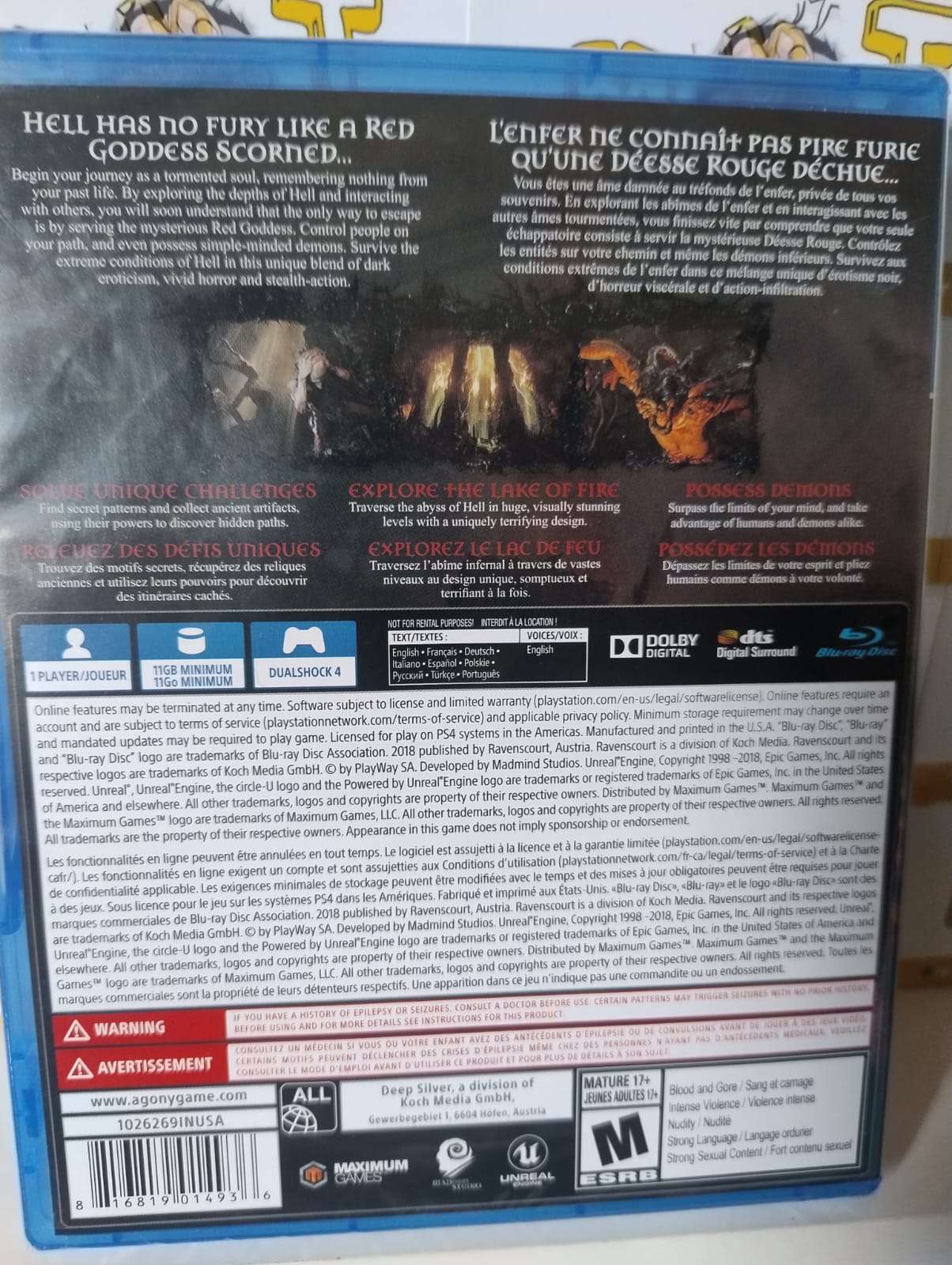 Agony é um jogo eletrônico de survival horror desenvolvido pelo estúdio polonês Madmind Studio e publicado pela PlayWay em 2018 para Windows, PlayStation 4 e Xbox One e pela For…
